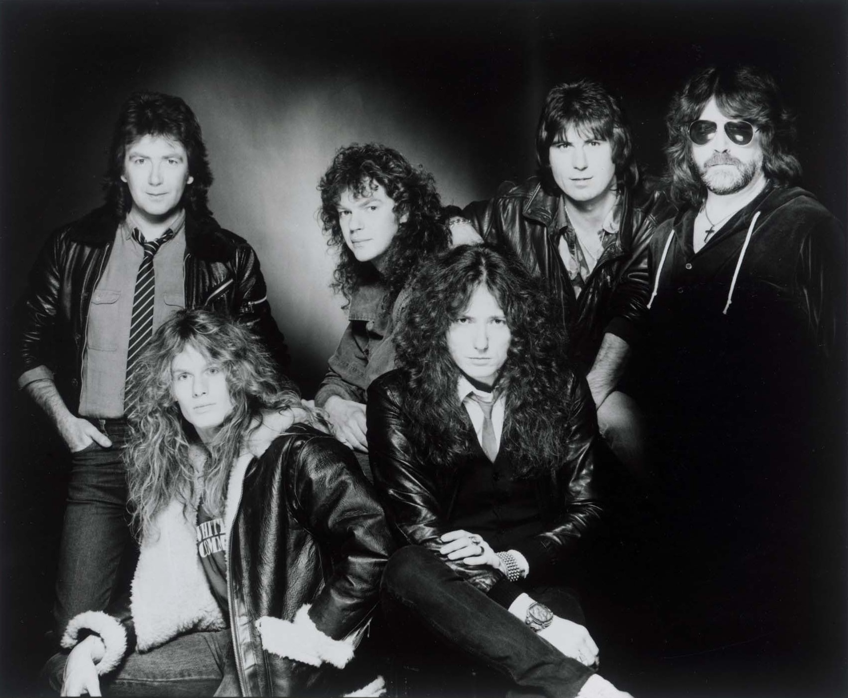Promotional photograph depicting Whitesnake in 1984 by Geffen Records, with David Coverdale in the middle of the group. Image source: Wikimedia Commons